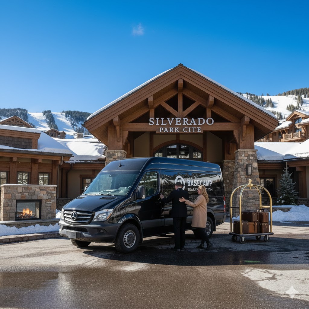 Experience a seamless journey to Silverado Lodge with Basecamp Transportation, utilizing our premium fleet of Ford Expedition Max, Chevy Suburban, and GMC Yukons specifically chosen for this drive. We also accommodate larger groups with our high-capacity Ford Transit, seating 14, and our luxurious Mercedes Sprinter, offering 11 to 14 seats. Crucially, to navigate the specific terrain around Silverado Lodge, every vehicle is meticulously maintained and equipped with 4-Wheel Drive or All-Wheel Drive alongside dedicated winter tires. This rigorous standard ensures a safe, elite arrival for you and your guests, providing absolute confidence regardless of weather conditions.
